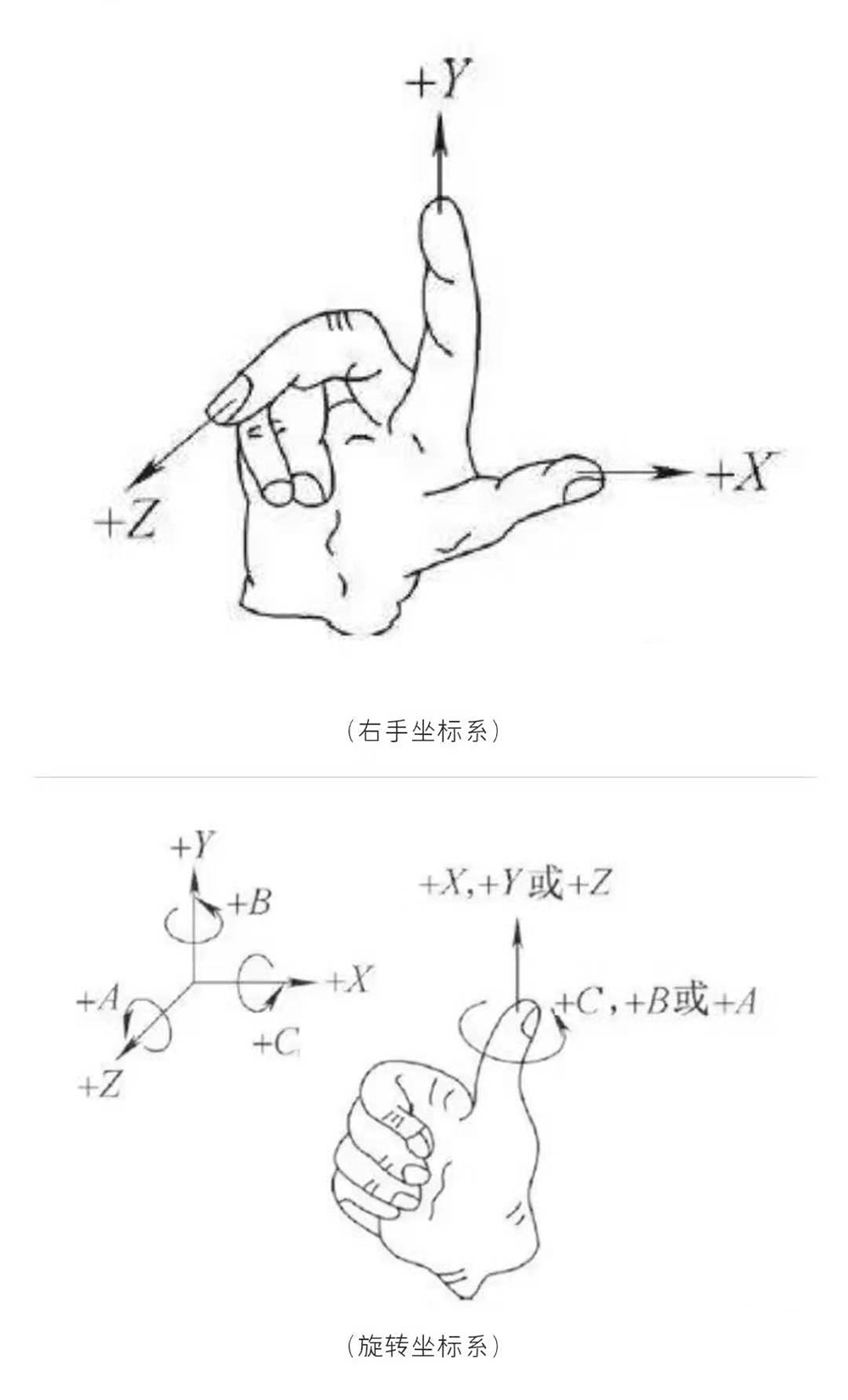 ● 當(dāng)圍繞平行于X 、Y 、 Z 軸線的各軸旋轉(zhuǎn)時(shí),分別定義為C 、B 、A 。