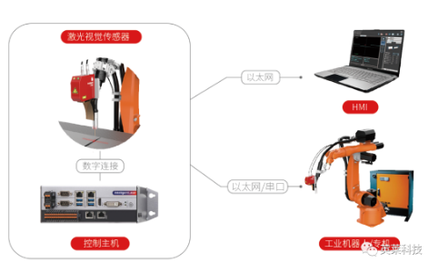 激光視覺焊縫跟蹤系統(tǒng)由焊縫跟蹤傳感器及控制主機組成,傳感器負責焊縫信息的主動采集,控制主機負責焊縫信息的實時處理,并與工業(yè)機器人或焊接專機保持實時通訊,讓工業(yè)機器人或焊接專機實現(xiàn)焊縫尋位、焊縫實時跟蹤的功能,識別焊縫偏移矯正焊接軌跡,實現(xiàn)真正的智能化焊接。