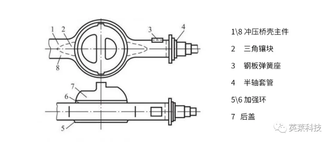 車輛行駛過程中產(chǎn)生的承重和傳力、彎矩、扭矩均由汽車后橋來承受,因此,車橋的強(qiáng)度、剛度和韌性至關(guān)重要,目前,我國汽車后橋橋殼主流的加工工藝多為沖焊焊接,焊接工藝的好壞成為影響汽車整體性能和安全的一個重要指標(biāo)。